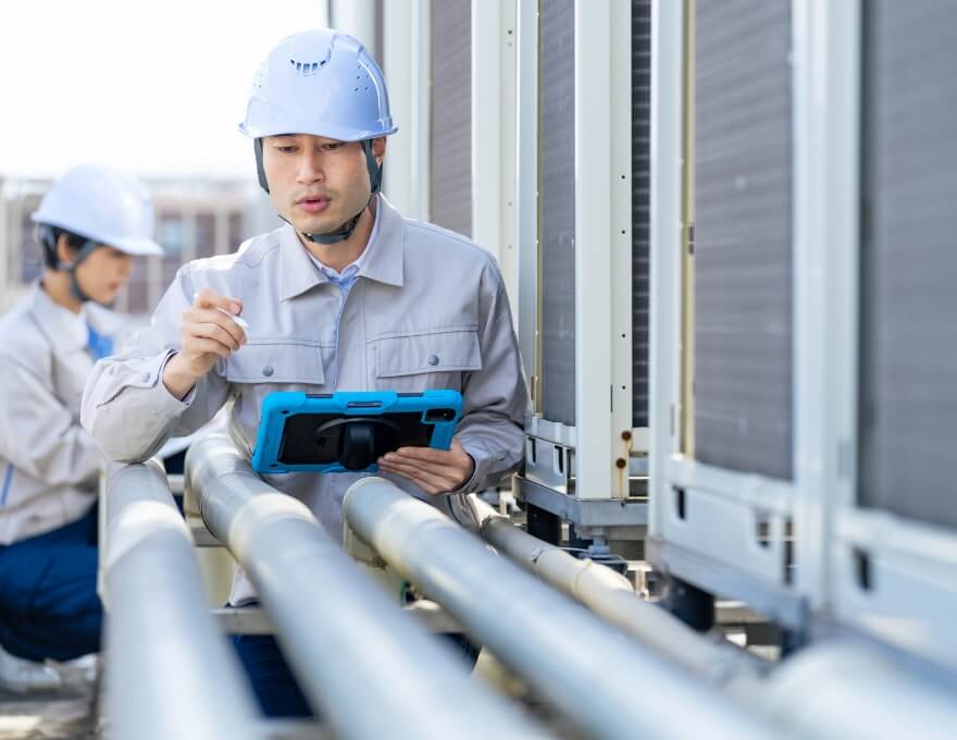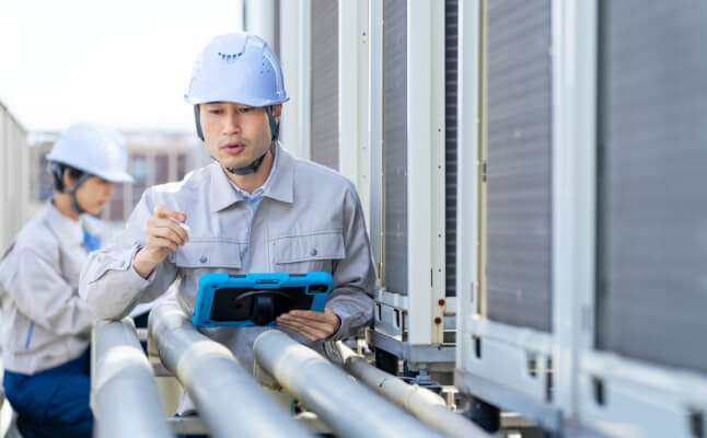 建物内の空気や水などを適切な基準に保つ「環境衛生管理」と、防災設備や電気設備などの安全性を保つ「設備管理」の2つの観点から建物を点検し、適切な保全対応までを一貫して行います。各設備のメンテナンスに関する有資格者が、法令に基づいた項目に則って点検を実施し、建物の環境衛生や機能性を守り続けます。